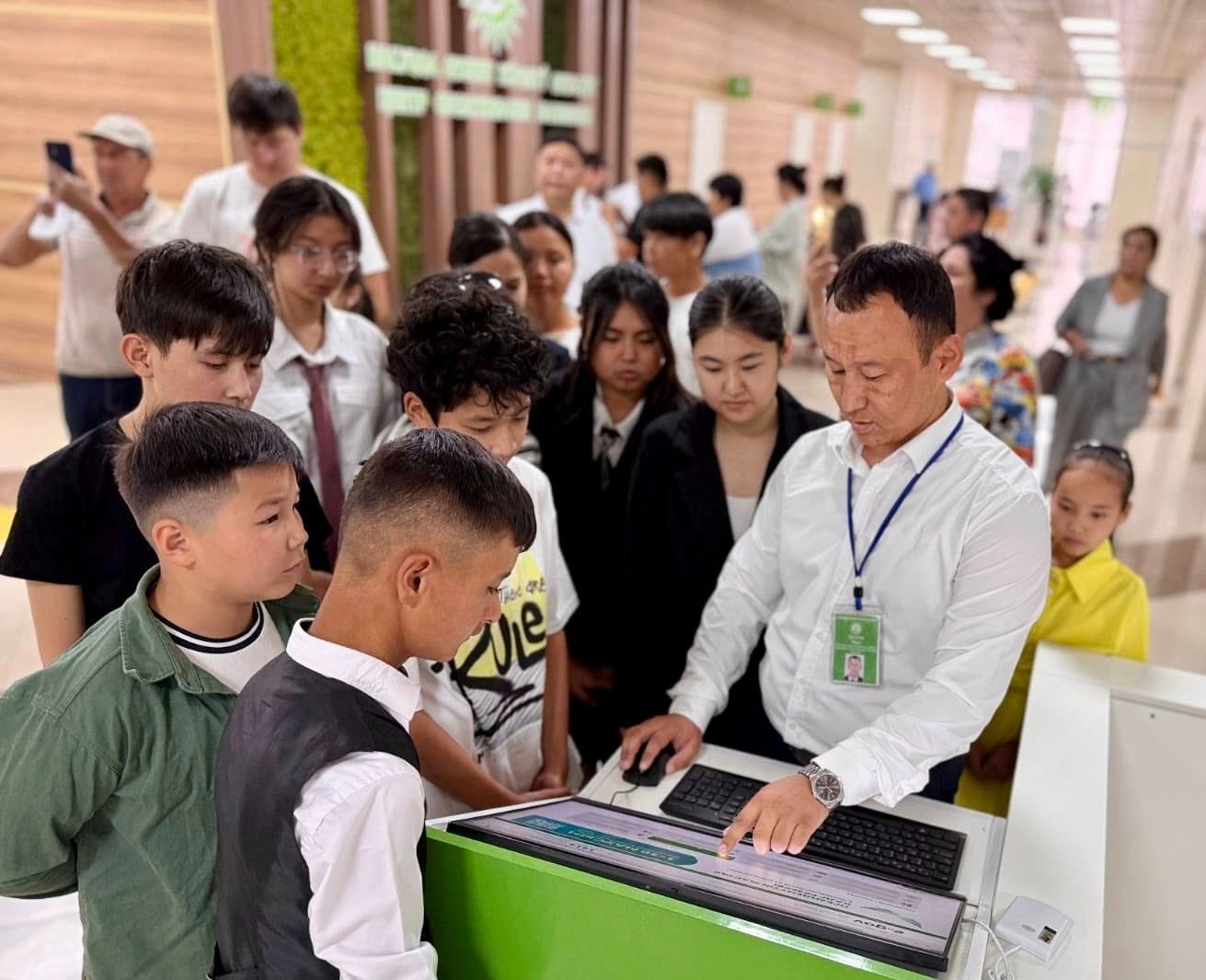 Үлкен жетістіктерге жеткен кішкентай балаларға фронт-кеңсе бойынша шолу экскурсиясы жасалды. Экскурсия барысында Мемлекеттік корпорацияның жұмысы, қызметтегі бағыт-бағдары жайлы ақпарат берілді. Сондай-ақ, мемлекеттік қызметтерді цифрлық форматта алу барысындағы цифрлық шешімдер туралы жан-жақты мәлімет берілді.