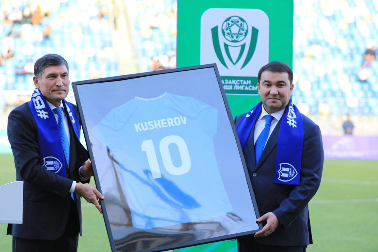 Клубтың жаңа инвесторы Дінмұхаммед Ыдырысов өңір басшысына «Тұран» футбол клубының оныншы нөмірлі жейдесін табыстады.
