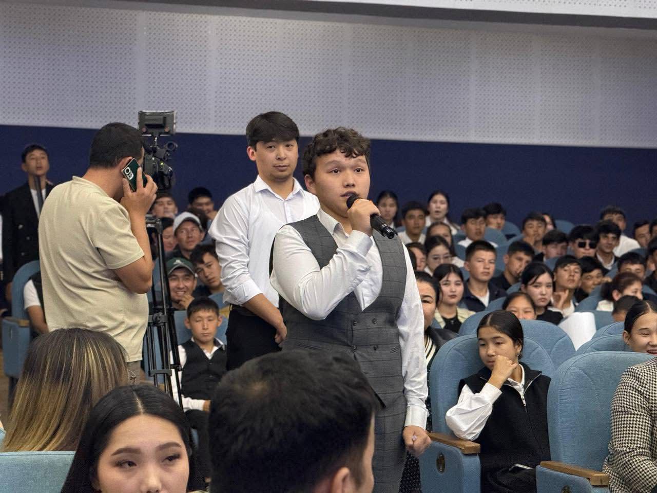 Кездесуге «Қазақстан КВН Одағы» республикалық жастар қоғамдық бірлестігінің президенті, «Құрмет» орденінің иегері Есентүгел Елеукен арнайы қатысып, жастармен еркін форматта пікір алмасты. Ол өмірлік тәжірибесімен бөлісіп, жастарды жауапкершілікке, отансүйгіштікке және заң талаптарын қатаң сақтауға шақырды.